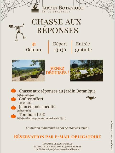 Sur réservation par mail obligatoire : jardinbotanique@domaine-citadelle.com