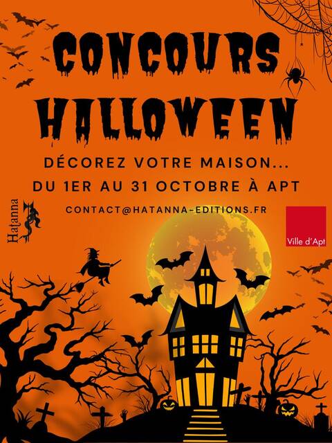 Concours de la plus jolie maison décorée pour Halloween. Ouvert à tous les résidents d'Apt possédant une fenêtre, un balcon, un jardin, donnant sur l'extérieur. TOUT (Aptésiens & autres) le monde peut voter ensuite pour sa maison préférée courant octobre.