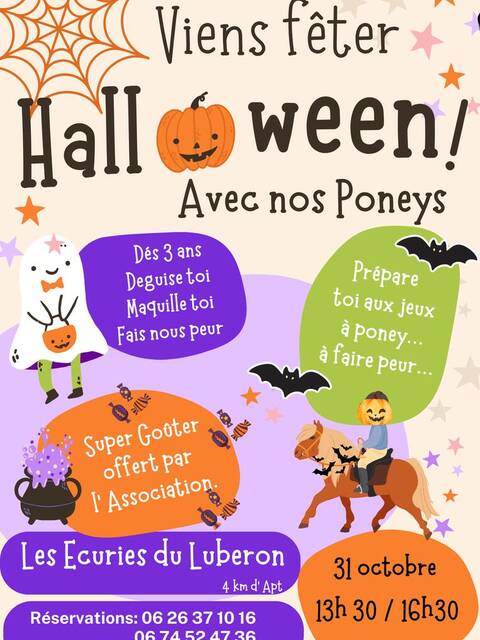 Viens maquillé, costumé, masqué si tu as envie ... Les poneys fêtent Halloween, au programme jeux à poney, balade, chasse aux bonbons dans les bois... Ouvert aux enfants dés 3 ans.