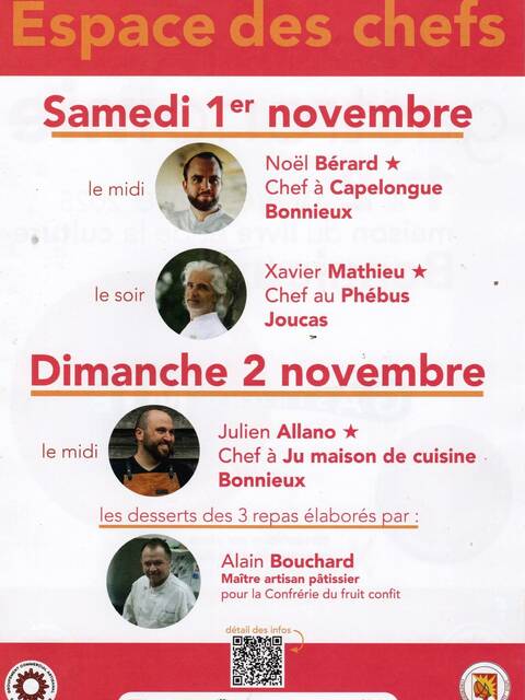 Les desserts des 3 repas seront élaborés par Alain Bouchard, Maître artisan pâtissier pour la Confrérie du fruit confit.